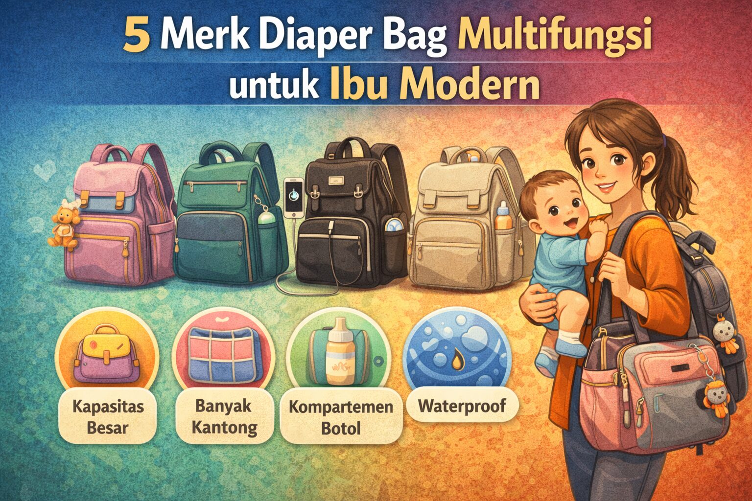 Diaper bag membantu ibu membawa perlengkapan bayi saat bepergian. Pilih yang multifungsi agar lebih praktis.